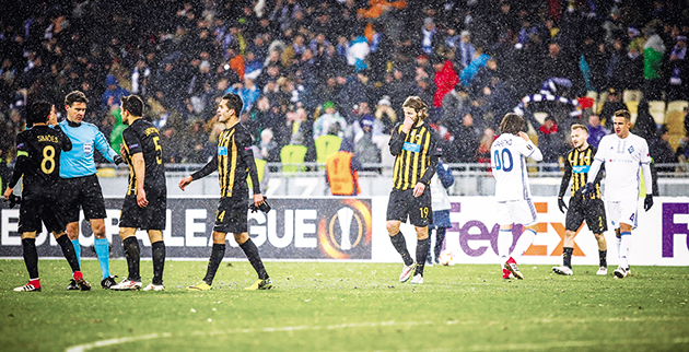 Από κει και πέρα, έγινε ένα ματς που σπάνια βλέπουμε από ελληνική ομάδα. Η ΑΕΚ έπαιξε την Ντιναμό στο μισό γήπεδο, αλλά κάτι το παγωμένο τερέν και κάτι το… πούλμαν των Ουκρανών δεν της επέτρεψαν να πετύχει γκολ. Στα τελευταία λεπτά οι γηπεδούχοι ροκάνισαν τον χρόνο και κατάφεραν να πάρουν την πρόκριση.