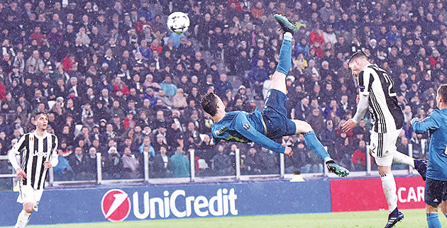 Η «μεγάλη κυρία» προσκύνησε στο μεγαλείο του Κριστιάνο Ρονάλντο! Ο Πορτογάλος σταρ σημείωσε δύο γκολ (3΄, 64΄) και μοίρασε μία ασίστ (72΄ στον Μαρσέλο) στο χθεσινό 3-0 της Ρεάλ Μαδρίτης επί της Γιουβέντους στο Τορίνο για τα προημιτελικά του Τσάμπιονς Λιγκ, κάνοντας όλο τον πλανήτη να παραμιλάει τόσο για το σπάνιας ομορφιάς (δεύτερο) τέρμα με ασύλληπτο ανάποδο ψαλίδι που πέτυχε, αφήνοντας άφωνους ακόμη και τους φίλους της «Γιούβε», όσο και για τα ανεπανάληπτα ρεκόρ του.