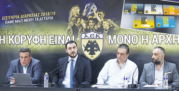 Συγκεκριμένα, με κεντρικό άξονα την κατάκτηση του πρωταθλήματος και την προοπτική επιστροφής στο Τσάμπιονς Λιγκ, η ΑΕΚ παρουσίασε τις κάρτες διαρκείας της για τη σεζόν 2018-19.