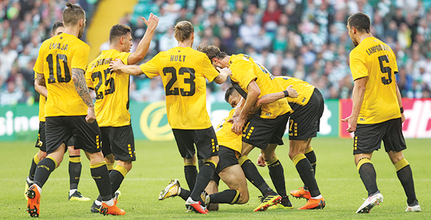 Η «Ενωση», στο πλευρό της οποίας βρέθηκε ο διοικητικός ηγέτης της Δημήτρης Μελισσανίδης, παρατάχθηκε δίχως τους τραυματίες Μάνταλο, Τσιγκρίνσκι, ενώ πρόβλημα προέκυψε κατά τη διάρκεια του ζεστάματος με τον Μπογιέ (είχε επιλεχθεί για την αρχική εντεκάδα). Παρότι οι «Κέλτες» πήραν προβάδισμα με τον ΜακΓκρέγκορ στο 17ο λεπτό, ο Μαρίνος Ουζουνίδης ήταν άριστα διαβασμένος. Η τακτική προσέγγιση του ματς από τους παίκτες του «Δικεφάλου» ήταν για σεμινάριο! Ετσι, οι «κιτρινόμαυροι» έφτασαν στην ισοφάριση με τον Βίκτωρα Κλωναρίδη στο 44ο λεπτό, ύστερα από ασίστ του Λόπες. Στο δεύτερο ημίχρονο, οι γηπεδούχοι είχαν τον έλεγχο της αναμέτρησης, ειδικά μετά την άδικη αποβολή με δεύτερη κίτρινη κάρτα (έπειτα από αυτή του 50′) στον Γαλανόπουλο για ανύπαρκτο φάουλ στον Φόρεστ στο 57′. Ομως, η «Ενωση» άντεξε στην πίεση, έχοντας σε εξαιρετική βραδιά και τον Μπάρκα, και κατάφερε να φύγει με σκορ πρόκρισης από τη Σκοτία. Ντεμπούτο με την κιτρινόμαυρη φανέλα έκανε ο Αλεφ, δείχνοντας θετικά στοιχεία.
