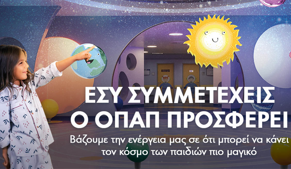 Οι ΟΠΑΠ Champions συμμετέχουν δυναμικά στην «Ομάδα Προσφοράς ΟΠΑΠ» και μας θέλουν μαζί τους, ώστε όλοι μαζί να δώσουμε δύναμη στο έργο ανακαίνισης των παιδιατρικών νοσοκομείων «Η Αγία Σοφία» και «Παναγιώτης και Αγλαΐα Κυριακού».