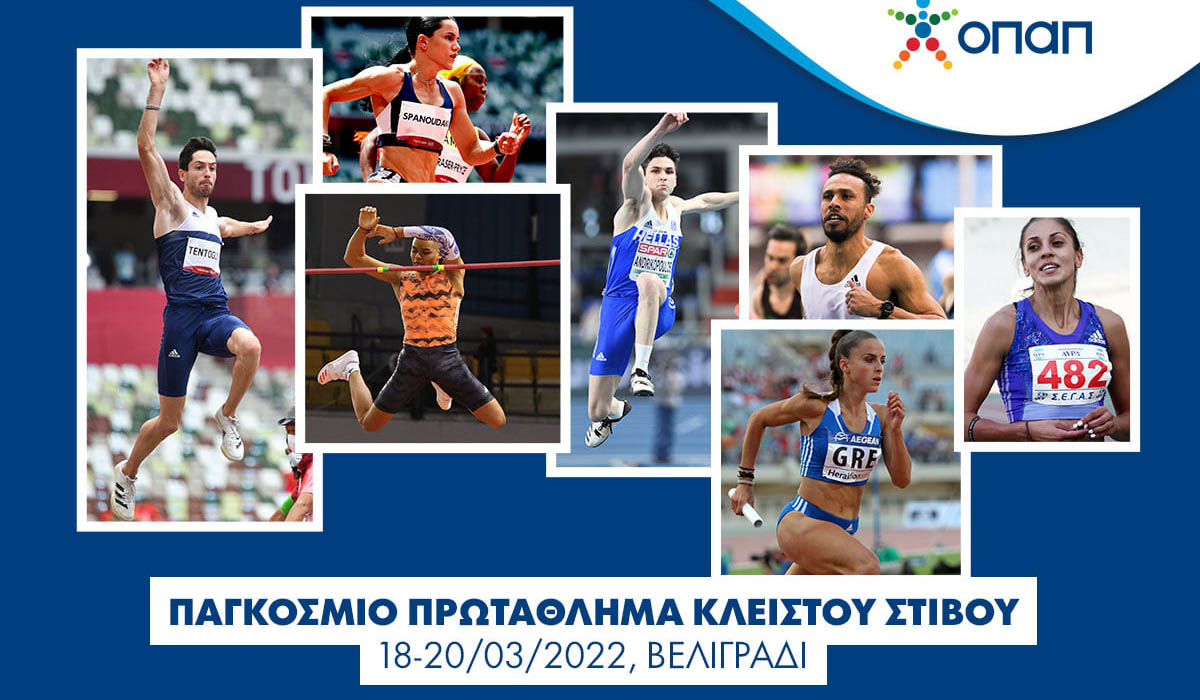 Το Παγκόσμιο Πρωτάθλημα Κλειστού Στίβου ξεκινάει την Παρασκευή στο Βελιγράδι, με την Εθνική μας Ομάδα να δίνει δυναμικό παρών με επτά αθλητές και αθλήτριες. Στο πλευρό τους έχουν τον ΟΠΑΠ, Μέγα Χορηγό του ΣΕΓΑΣ, που εύχεται καλή επιτυχία στην ελληνική αποστολή.