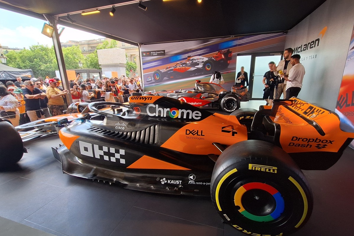 Λίγο πριν το 12ο Grand Prix της χρονιάς στην ιστορική πίστα του Silverstone, η Trafalgar Square στο Λονδίνο «ντύθηκε» στα χρώματα της McLaren με χιλιάδες υποστηρικτές της ομάδας να σχηματίζουν ουρές χιλιομέτρων για να δουν από κοντά τους αγαπημένους τους πιλότους, Lando Norris και Oscar Piastri.
