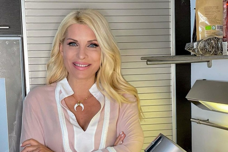 Το πρωί της Δευτέρας πόζαρε καθισμένη στον πάγκο της κουζίνα της και έγραψε: «Σε λίγες μέρες θα σας ετοιμάσω με τη βοήθεια της αγαπημένης μας κουζινομηχανής μια υπέροχη συνταγή που… δεν θα σας πω περισσότερα τώρα, θα περιμένω όμως να μου γράψετε τα σχόλια σας…».