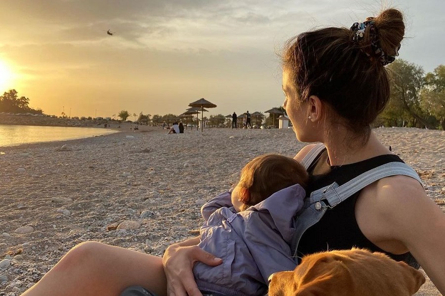 Άφησε για λίγο τα γυρίσματα της σειράς «Ήλιος» και πήγε να απολαύσει το ηλιοβασίλεμα παρέα με την κορούλα της στην παραλία.