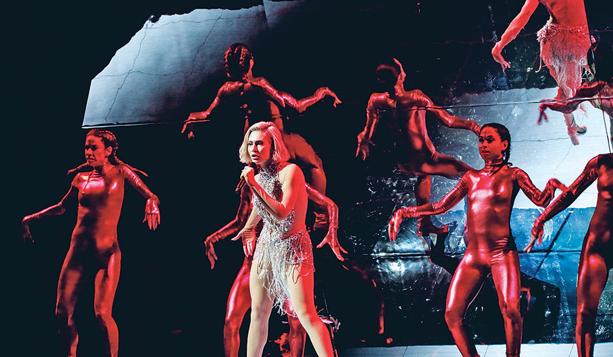 Στη γέφυρα του τραγουδιού φάνηκε στον καθρέφτη η λέξη «El Diablo» με κόκκινα γράμματα και στο τέλος η Ελενα περπάτησε προς το πίσω μέρος της σκηνής, με τον τίτλο του τραγουδιού να… φλέγεται. Η πρώτη εμφάνισή της τελείωσε με κοντινό πλάνο στο όμορφο πρόσωπό της.