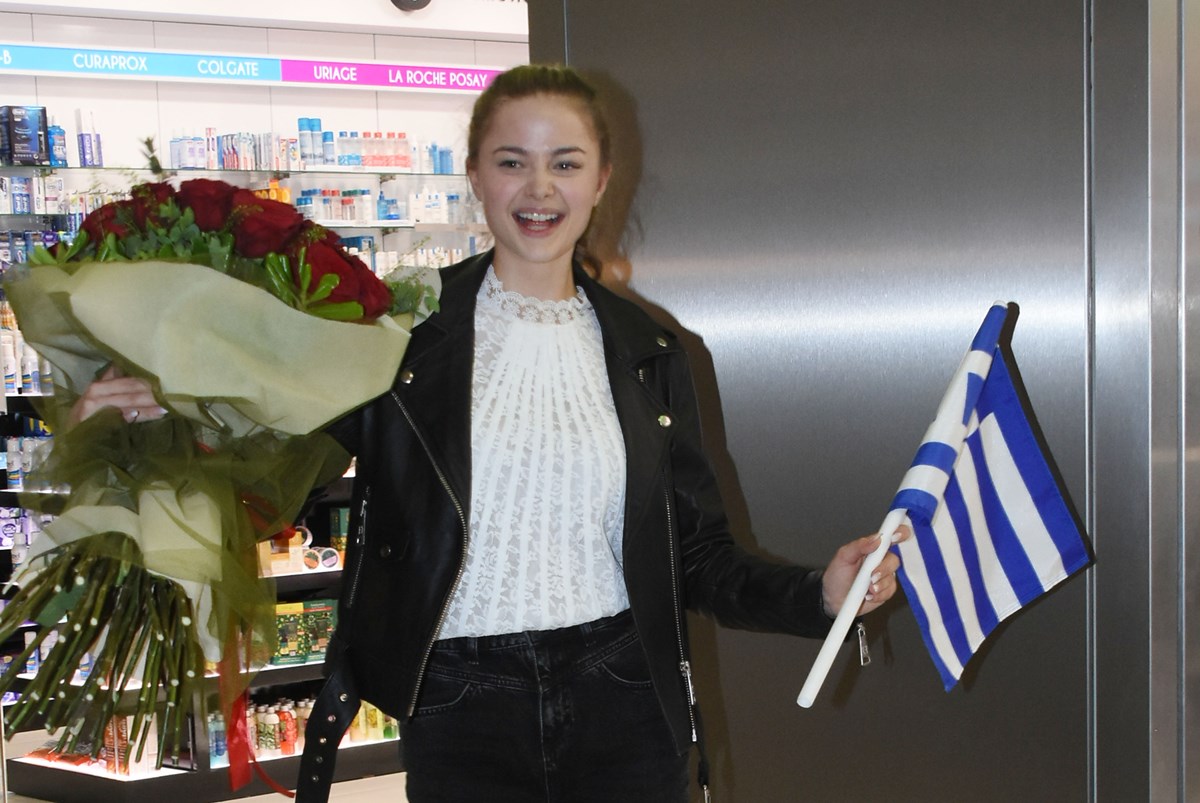 Η νεαρή τραγουδίστρια μόλις έφτασε στην Ελλάδα την περίμεναν οι δημοσιογράφοι στο αεροδρόμιο για να κάνει δηλώσεις.