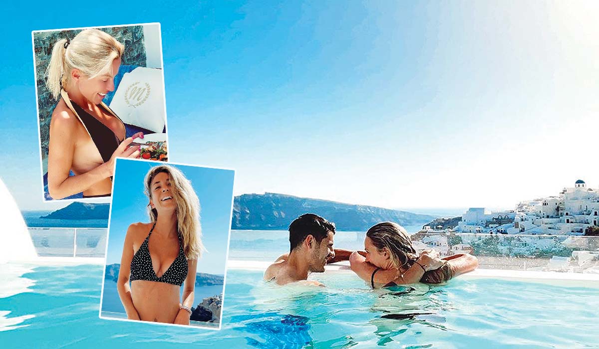 Αν και η πρώτη απόπειρα του ζευγαριού να ταξιδέψει στην Ελλάδα στέφθηκε με αποτυχία, ο σταρ της μπάλας και η καλλονή σύζυγός του δεν πτοήθηκαν από το… φιάσκο και κατάφεραν να βρεθούν στη Σαντορίνη, μη μπορώντας να κρύψουν τον έρωτά τους και τον ενθουσιασμό τους για το κυκλαδίτικο νησί!