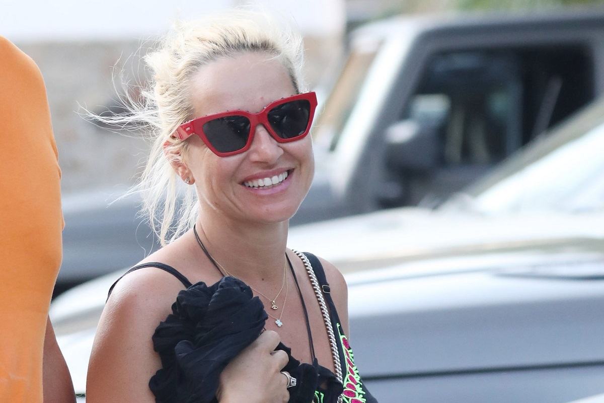 Η παρουσιάστρια που έχει αποκτήσει μια καλλίγραμμη σιλουέτα επέλεξε ολόσωμο μαγιό, συνδυασμένο με ψάθινο καπέλο και μεγάλο γυαλιά.