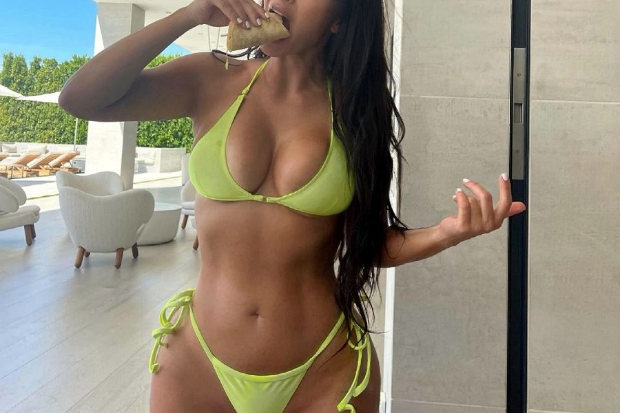 Η σέξι Kim πόζαρε στην αυλή της με φόντο τη πισίνα να τρώει και στη συνέχεια δημοσίευσε τη φωτογραφία της στο instagram σαρώνοντας σε likes. Κατάφερε να αναστατώσει τον ανδρικό πληθυσμό με τις πόζες της!