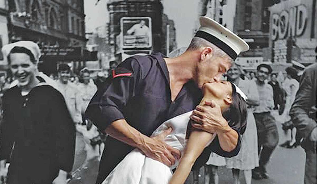 Πρόκειται για το θρυλικό ασπρόμαυρο «κλικ» που τράβηξε ο Αμερικανός φωτορεπόρτερ Αλφρεντ Αϊζενστατ στις 14 Αυγούστου 1945, κατά τη διάρκεια των πανηγυρισμών στη Νέα Υόρκη για την παράδοση της Ιαπωνίας, γεγονός που σηματοδότησε επί της ουσίας και το τέλος του πολέμου.
