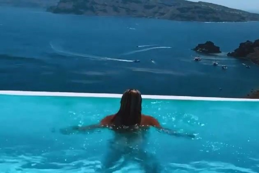 Πόσταρε βίντεο να κολυμπάει στη πισίνα του ξενοδοχείο που μένει έχοντας θέα το απέραντο γαλάζιο. Συνδύασε πρωινή γυμναστική και χαλάρωση το πρωί της Τετάρτης. Για ποια κυρία πρόκειται;