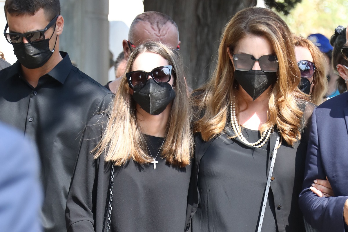 Η Άντζελα Γκερέκου συντριμμένη κρατούσε σφιχτά στην αγκαλιά την κόρη της, Μαρία που δεν σταματούσε να κλαίει αποχαιρετώντας τον πατέρα της. Λίγες ώρες μετά την κηδεία δημοσίευσε φωτογραφία στο instagram να ποζάρουν αγκαλιά με τον Τόλη Βοσκόπουλο και έγραψε: «Καληνύχτα».