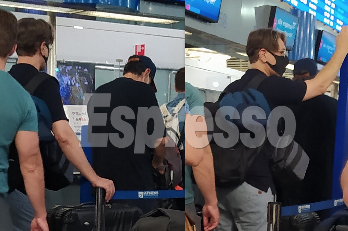Ο Γιάννης Μπέζος ντυμένος σπορ, με καπέλο και μάσκα για τον κορονοϊό έφτασε με τους συνεργάτες τους στο αεροδρόμιο. Επειδή υπήρχε πολύς κόσμος που ταξίδευε και επικρατούσε πανικός, ο Αιμίλιος Χειλάκης πήγε πρώτος στον κισέ εισιτηρίων να κανονίσει τα χαρτιά και στη συνέχεια ακολούθησαν και οι υπόλοιποι.