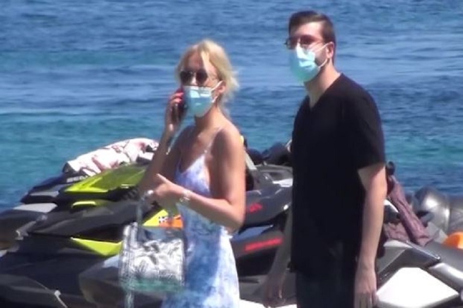 Ο γόνος της εφοπλιστικής οικογένειας διατηρεί εξοχική κατοικία στο νησί των Ανέμων και χαλαρώνει με την παρουσιάστρια. Η κάμερα του Mykonoslivetv απαθανάτισε το ζευγάρι στην παραλία της Ψαρρούς.