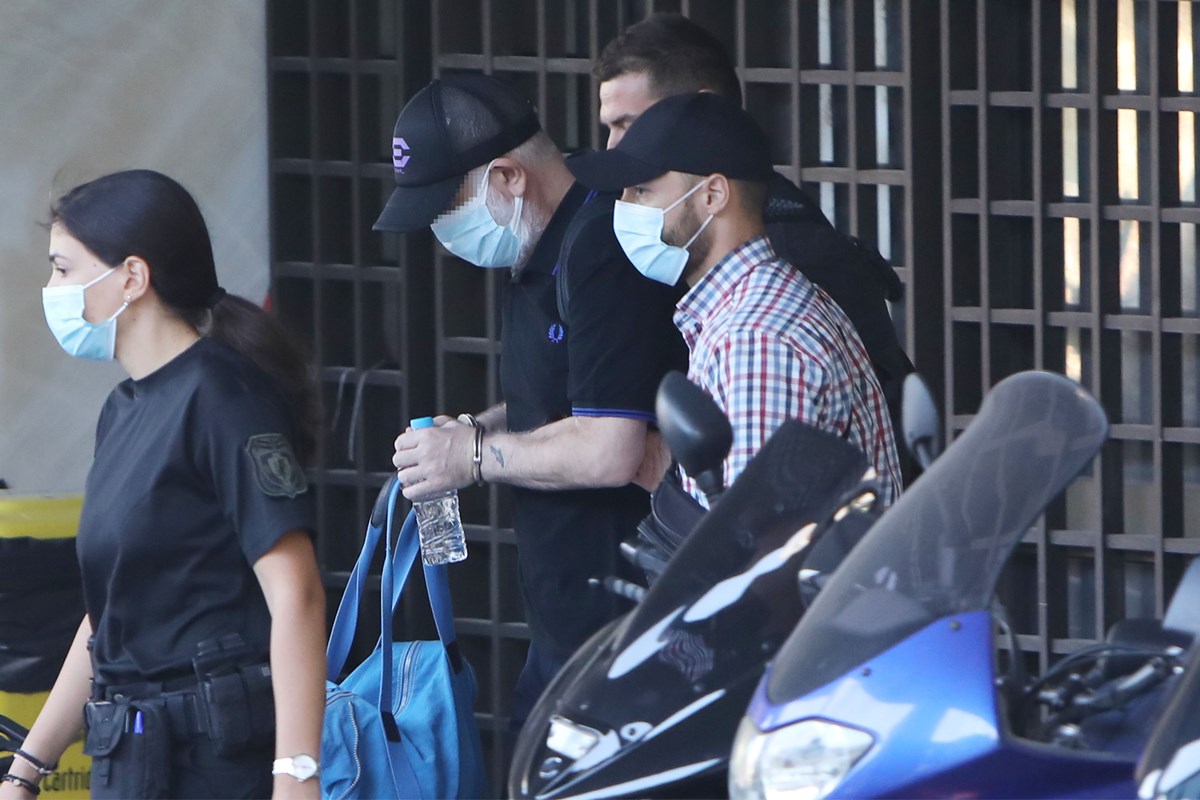 Ο Πέτρος Φιλιππίδης με χειροπέδες και συνοδεία αστυνομικών βγήκε από τη ΓΑΔΑ για να μεταφερθεί στις φυλακές Τριπόλεως.