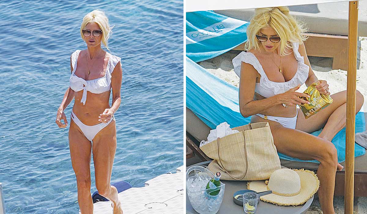 Στα κρυστάλλινα νερά του νησιού των ανέμων συνεχίζει να κάνει βουτιές η Βικτόρια Σίλβστεντ. Το 46χρονο μοντέλο ανέδειξε την Κυριακή, για άλλη μια φορά, τις «θανατηφόρες» καμπύλες της σε παραλία της Μυκόνου, φορώντας ολόλευκο μπικίνι.