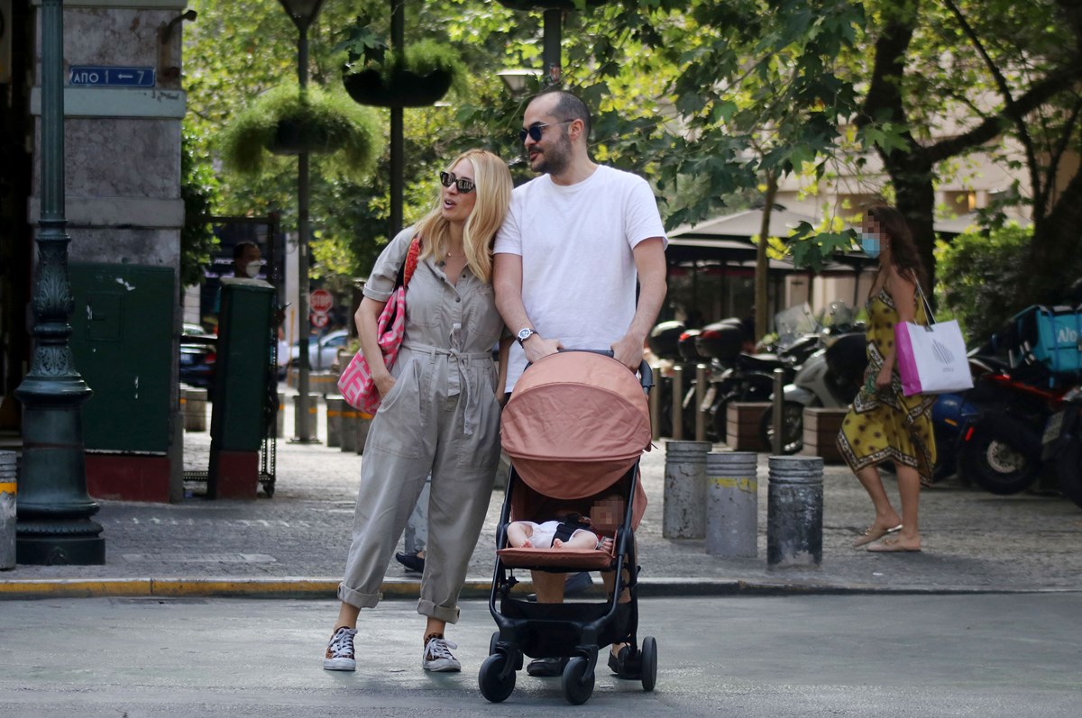 Ο φωτογραφικός μας φακός απαθανάτισε το ζευγάρι να κάνει βόλτες στον ήλιο με τη κόρη τους στο κέντρο της Αθήνας. Χαμογελαστοί και ευδιάθετοι απόλαυσαν τις βόλτες τους με τη μικρή τους.