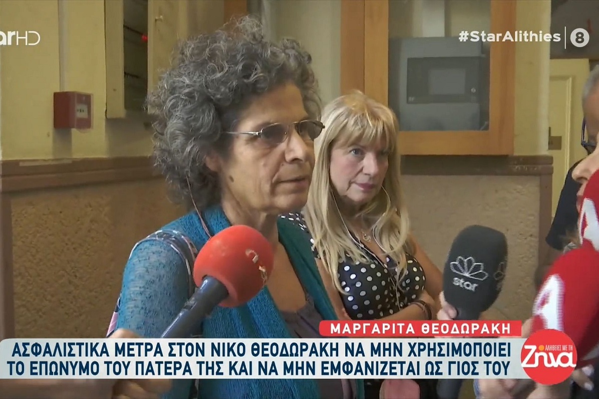 Ασφαλιστικά μέτρα κατέθεσε η Μαργαρίτα Θεοδωράκη στον Νίκο Θεοδωράκη να μην χρησιμοποιεί το επώνυμο του πατέρα της και να μην εμφανίζεται ως γιος του.