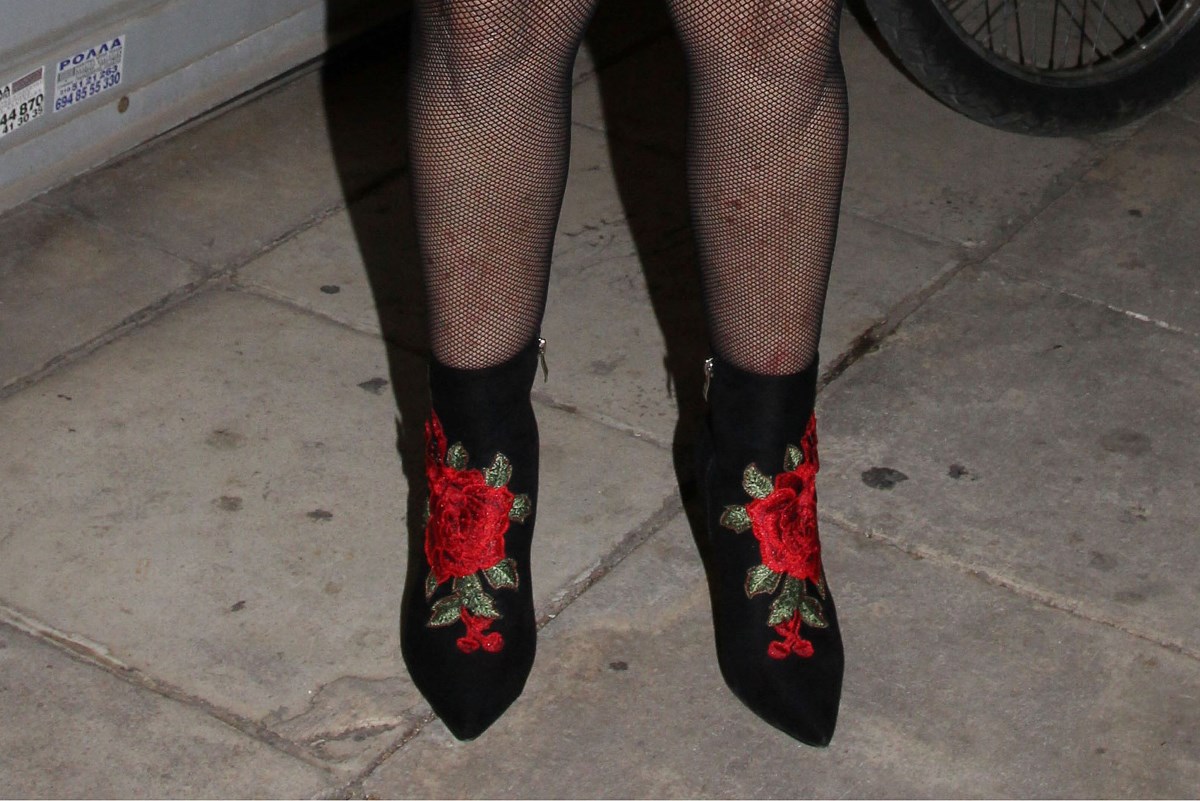 Αυτή τη φορά τα βλέμματα μαγνήτισαν τα μποτάκια της που είχαν πάνω ένα κόκκινο τριαντάφυλλο το καθένα αλλά και τα μεγάλα δαχτυλίδια που επέλεξε. Η Άννα Φόνσου ξέρει πώς να κλέβει τις εντυπώσεις και όσο μεγαλώνει γίνεται όλο και πιο κομψή. Ο φωτογραφικός μας φακός την απαθανάτισε στο Θέατρο Βικτώρια στην επίσημη πρεμιέρα της παράστασης «Εγώ η Λένγκω».