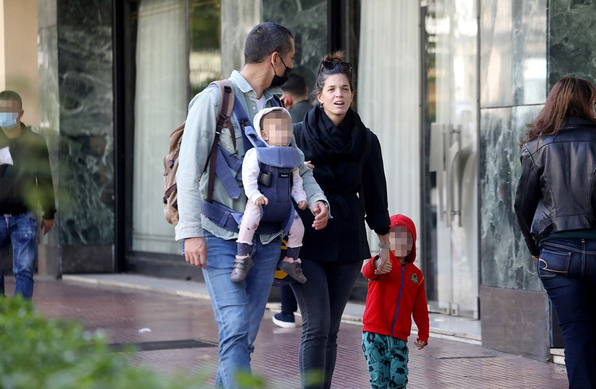 Ο Σωτήρης Κοντιζάς με τη σύζυγό του, Δέσποινα και τα παιδιά τους βγήκα για ψώνια στο κέντρο της Αθήνας.
