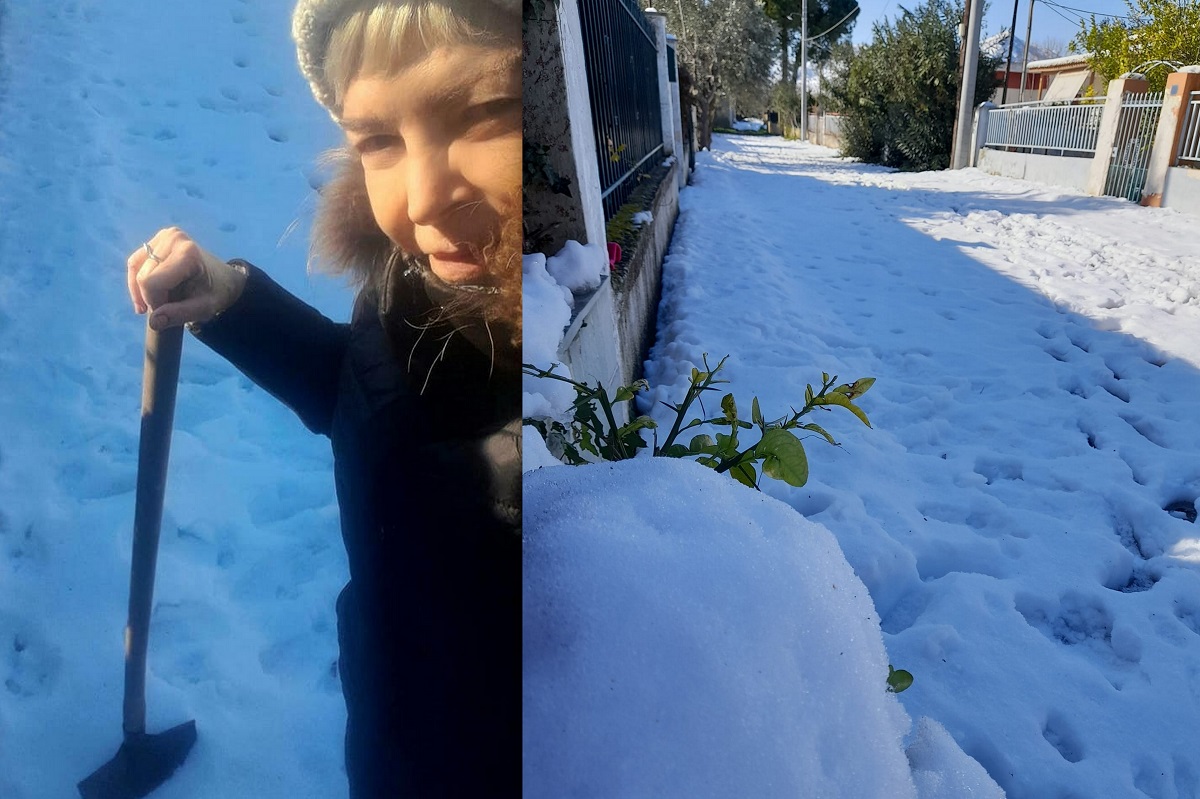 Η ραδιοφωνική παραγωγός έγραψε προχθές: «Εδώ Σχινιοχωριό. Ταυτόχρονα μαγικά όμορφο αλλά και δύσκολο. Δεν βλέπεις τίποτε άλλο εκτός από μια λευκή κουρτίνα παντού. 300 μέτρα από την θάλασσα. Τα εκχιονιστικά προσπαθούν να κρατήσουν την Λ.Μαραθώνος ανοιχτή. Οι εσωτερικοί δρόμοι πλέον χωρίς 4×4 ή αλυσίδες αδιάβατοι και το χιόνι πέφτει με κεραυνούς πάρα πολύ πυκνό και ασταμάτητο.