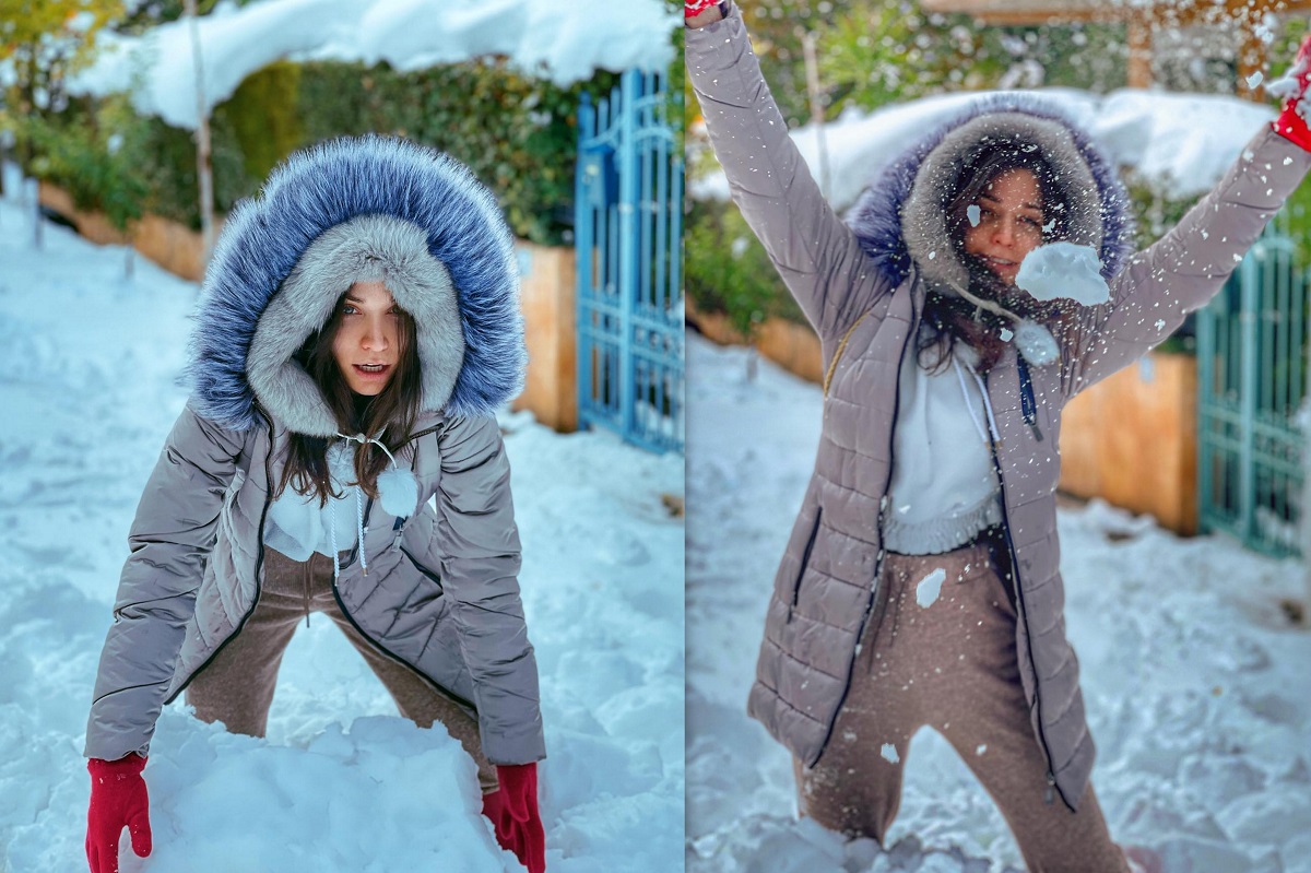 Η Κατερίνα Γερονικολού απόλαυσε το παιχνίδι στα χιόνια στη γειτονιά της στου Παπάγου.
