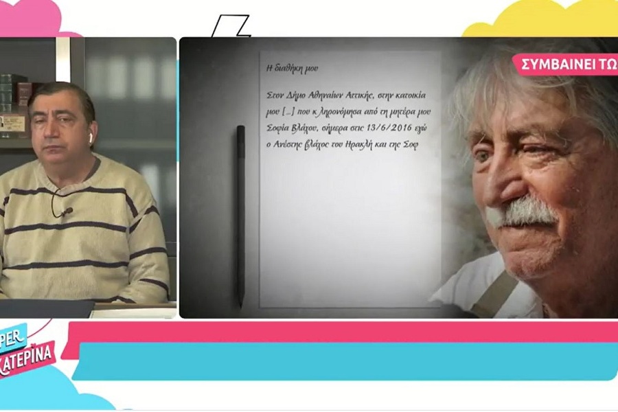 Όπως σας ενημερώσαμε η διαθήκη αναφέρει πως όλη η περιουσία του Ανέστη Βλάχου πάει στην κόρη του. Ο Ηρακλής Βλάχος μιλώντας στην Espresso είχε δηλώσει πως θα προβεί σε προσβολή της διαθήκης.