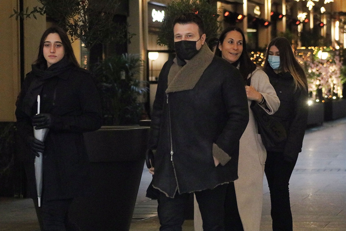Ο Γιάννης Πλούταρχος με τη σύζυγό του, Μαρία Παπαδοπούλου και τις κόρες τους βγήκαν για καφεδάκι στο κέντρο της Αθήνας.