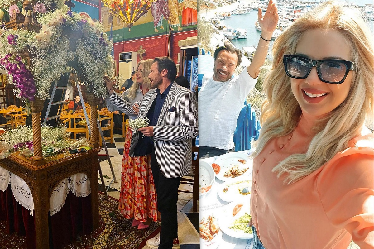 Το ζευγάρι λατρεύει το νησί και επέλεξε να περάσει εκεί τις ημέρες του Πάσχα. Πέρα από τη διασκέδαση η εκκλησία είναι για εκείνους ο πρώτος σταθμός αυτές τις ημέρες και βοήθησαν στον στολισμό του επιταφίου στην Παναγία Μυρτιδιώτισσα και πόσταραν φωτογραφία τους στο Instagram.