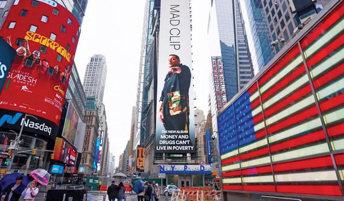 Ο Mad Clip με τις αλλεπάλληλες μεγάλες επιτυχίες, που συνεχίζει να ζει μέσα από τα τραγούδια του, φιγουράρει στη φημισμένη Times Square της Νέας Υόρκης!