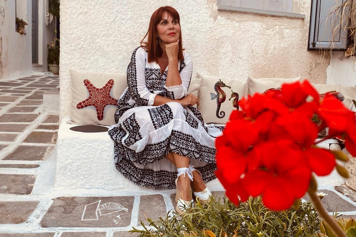Η κυρία της φωτογραφίας ποζάρει στον φωτογραφικό φακό της κόρης της στη Σέριφο.