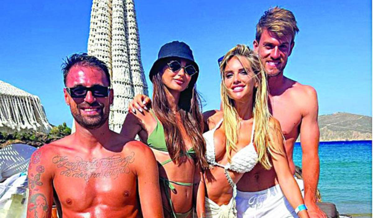 Ο ύψους 1,94 μ. γκολκίπερ και ο 28χρονος κεντρικός αμυντικός, όπως είναι φυσικό δεν προσγειώθηκαν «ντουέτο» στον δημοφιλή προορισμό, άλλα έχοντας δίπλα τους τις συντρόφους τους! Και τι συντρόφους! Σκέτη κόλαση! Από τη μια ο πορτιέρο έχει την καλλονή Giulia Ortaggi, και από την άλλη ο «κέρβερος» της άμυνας την εντυπωσιακή ξανθιά δημοσιογράφο Michella Persico. Τα δύο ζευγάρια απολαμβάνουν τόσο τις παραλίες του νησιού, με τα κορίτσια να προκαλούν κύματα ενθουσιασμού στους λουόμενους με τις εμφανίσεις τους, όσο και τη νυχτερινή ζωή!