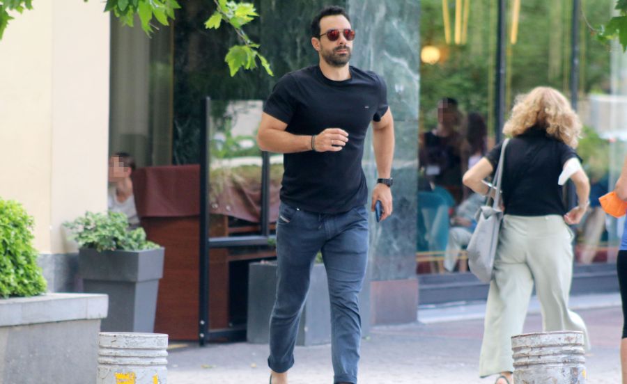 Ο Σάκης Τανιμανίδης εντοπίστηκε από τον φωτογραφικό φακό στο κέντρο της Αθήνας να περπατά μόνος του και κάπως βιαστικός.