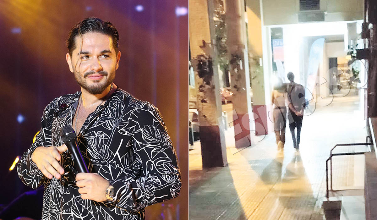 Ο τραγουδιστής, ενώ απόλαυσε το ποτό του με παρέα σε γνωστό μπαρ της περιοχής, έφυγε από το μαγαζί περίπου στις 2 τα ξημερώματα Παρασκευής μαζί με τη μικροκαμωμένη συνοδό του. Την ώρα λοιπόν που περπατούσαν αγκαλιά στην οδό Βεΐκου, άρχισαν τα φιλιά στη μέση του δρόμου!