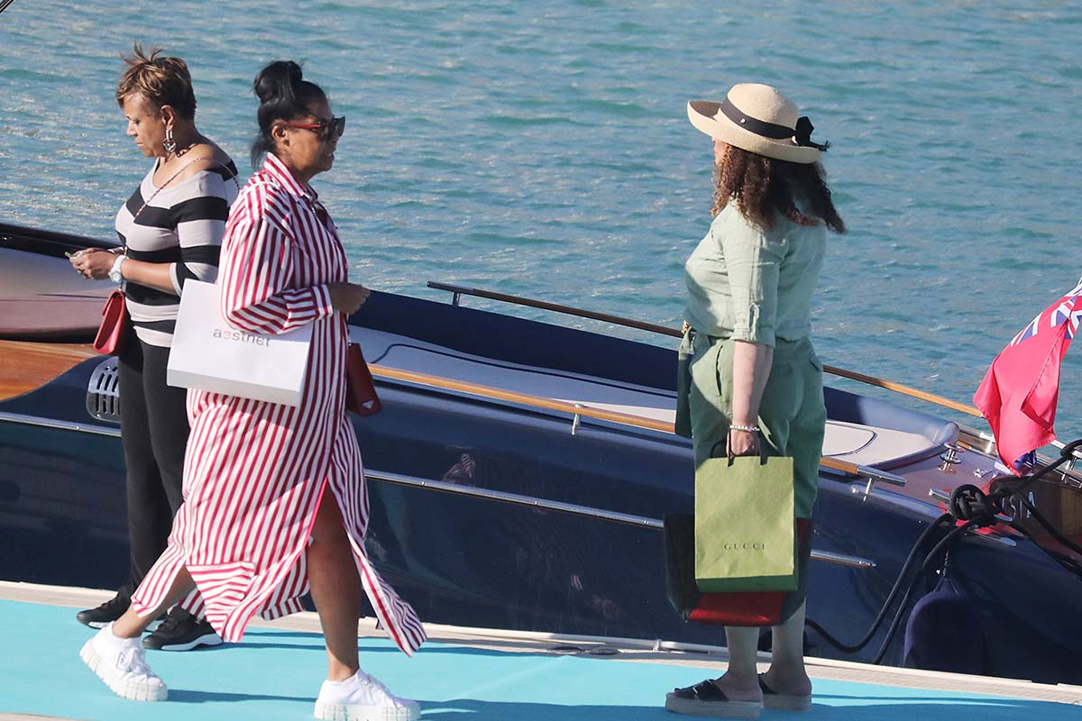 Ο φωτογραφικός φακός τις εντόπισε την στιγμή που ανέβαιναν στο σκάφος και ήταν και οι δύο πολύ κομψές και εντυπωσιακές! Η Tina Knowles προτίμησε για το look της ένα λινό πουκάμισο και ένα παντελόνι σε χακί αποχρώσεις και το ολοκλήρωσε με ένα μεγάλο, ψάθινο καπέλο και flatforms. Από την άλλη, η Cookie, επέλεξε ένα καλοκαιρινό, μακρύ shirt dress με κόκκινες ρίγες και λευκά sneakers.
