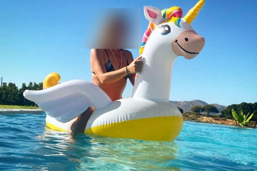 Πήρε το σωσίβιο «μονόκερο» των παιδιών της και απόλαυσε τις βουτιές της και πόζαρε για μια φωτογραφία. Στη συνέχεια δημοσίευσε τη φωτογραφία της στο Instagram η Κατερίνα Καραβάτου και απέσπασε πολλά likes.