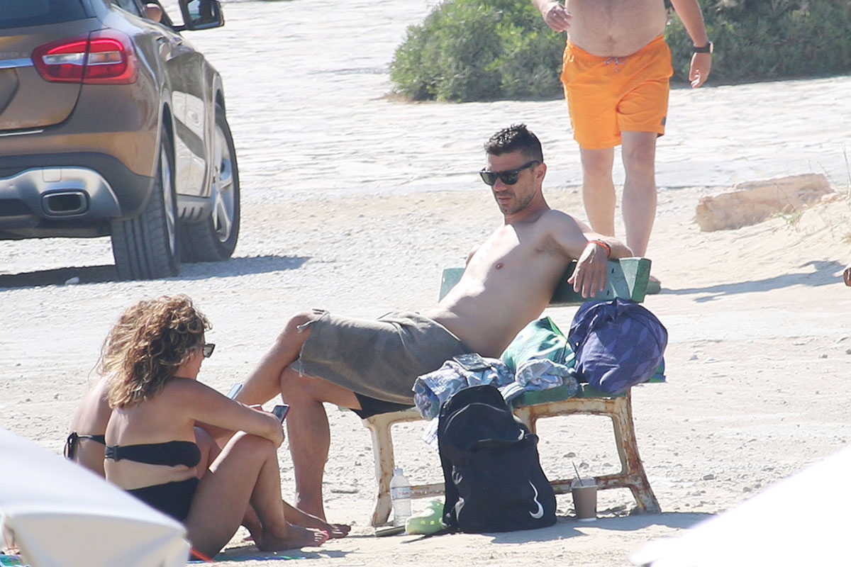 Ο πρώην διεθνής ποδοσφαιριστής απαθανατίστηκε από τον φωτογραφικό φακό να κάθεται σε μια καρέκλα στην άμμο δίπλα στην θάλασσα μαζί με δύο κυρίες άγνωστης ταυτότητας.