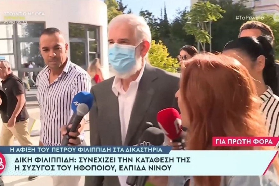Ο Πέτρος Φιλιππίδης νωρίς το πρωί της Παρασκευής έφτασε στα δικαστήρια κρατώντας φακέλους συνοδευόμενος από τη σύζυγό του, Ελπίδα Νίνου και έναν εκ των δικηγόρων του τον Μιχάλη Δημητρακόπουλου.