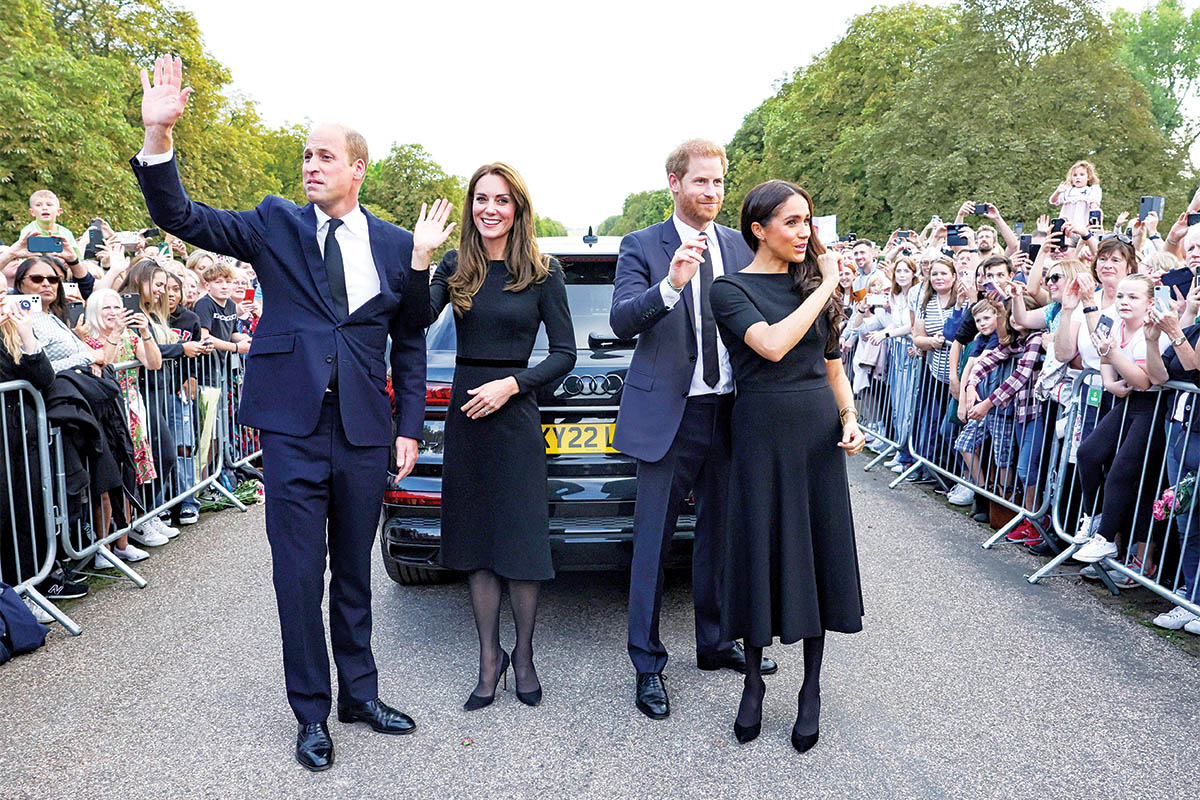 Ο κόσμος που είχε μαζευτεί μπροστά από το παλάτι ενθουσιάστηκε όταν είδε ξανά ενωμένη την αγαπημένη του τετράδα, την οποία ο βρετανικός Τύπος αποκαλεί «Οι φανταστικοί τέσσερις». Οταν τα δυο πριγκιπικά ζευγάρια τούς πλησίασαν, κατά δεκάδες οι πολίτες έσπευσαν να τους δώσουν το χέρι ή να πιάσουν μια σύντομη συζήτηση μαζί τους. Κάποια στιγμή η Κέιτ είδε ένα παιδάκι να κλαίει για τον θάνατο της Ελισάβετ, οπότε γονάτισε δίπλα του και, αφού το έκανε να σταματήσει το κλάμα, του είπε πως ο μικρός της γιος, Λούις, της είπε ότι «τουλάχιστον τώρα η γιαγιά είναι με τον παππού».