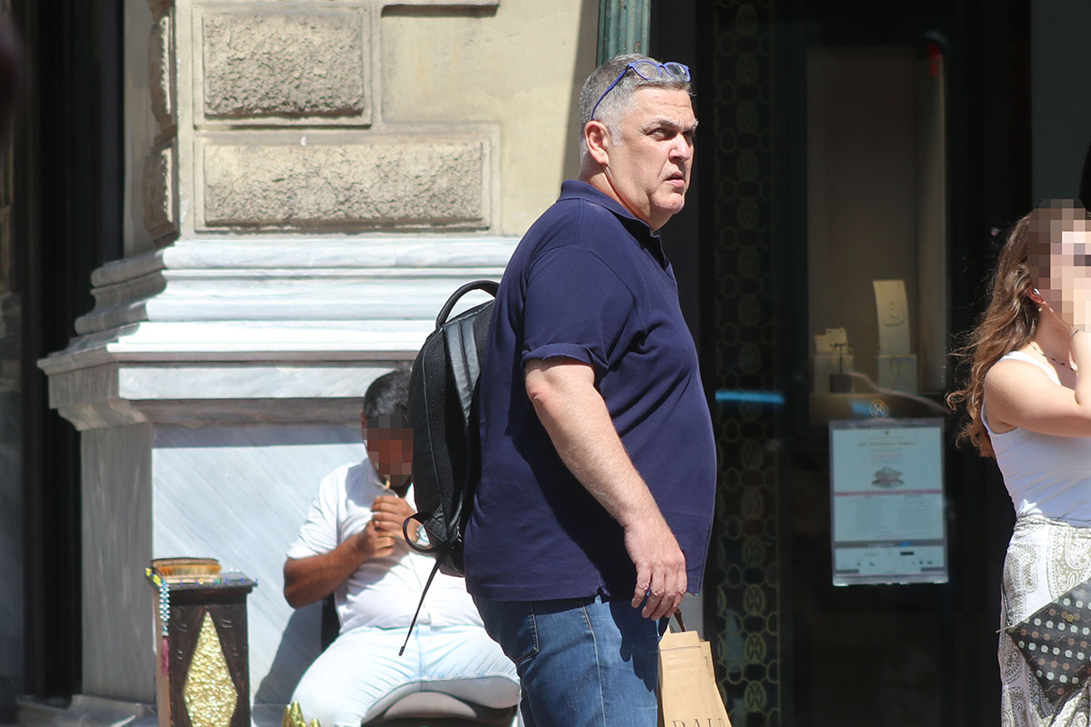 Ο ηθοποιός και σκηνοθέτης εντοπίστηκε από τον φωτογραφικό φακό να περπατά στο κέντρο της Αθήνας και να κάνει τα ψώνια του.