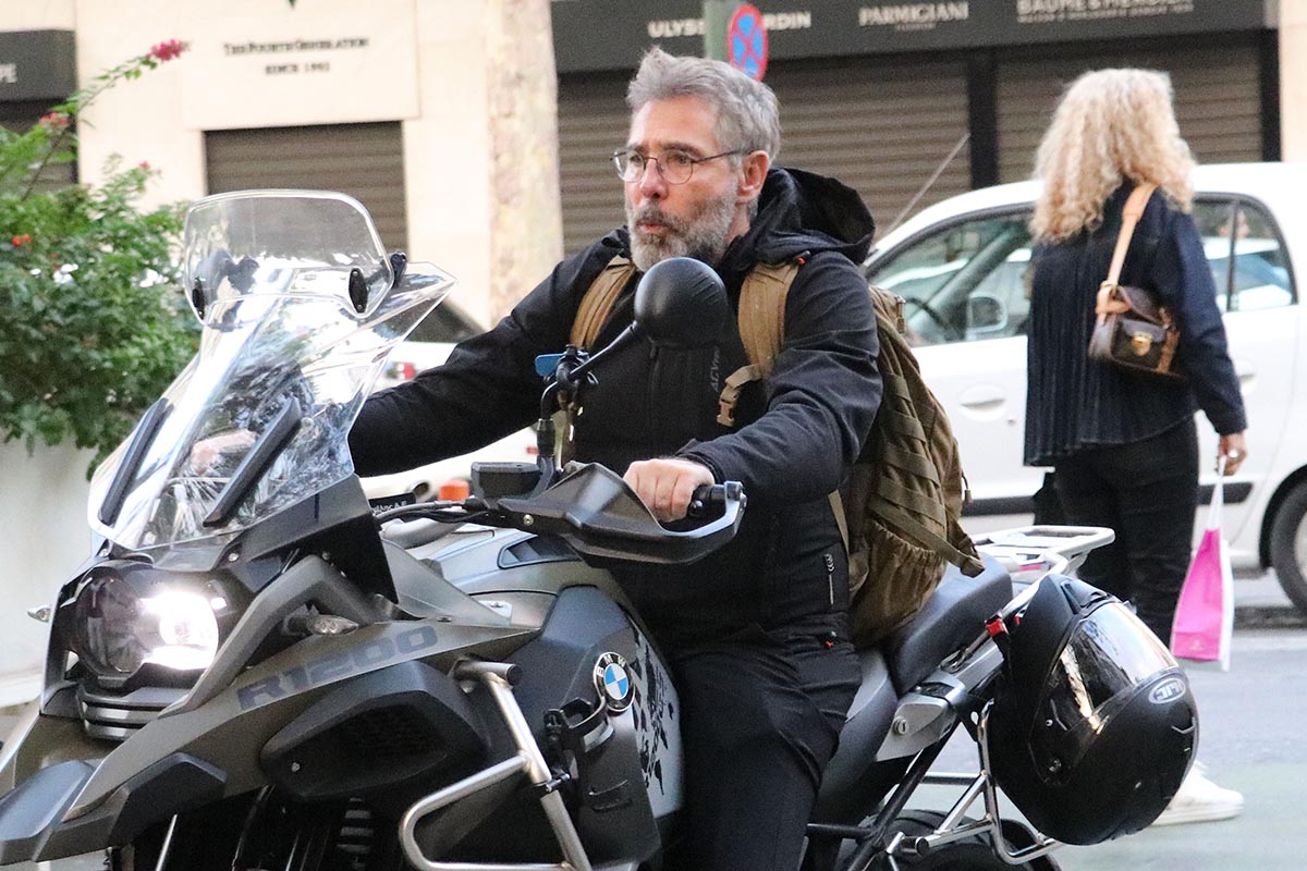 Τον ηθοποιό Θοδωρή Αθερίδη εντόπισε ο φωτογραφικός μας φακός στο κέντρο της Αθήνας πάνω στην μηχανή του.