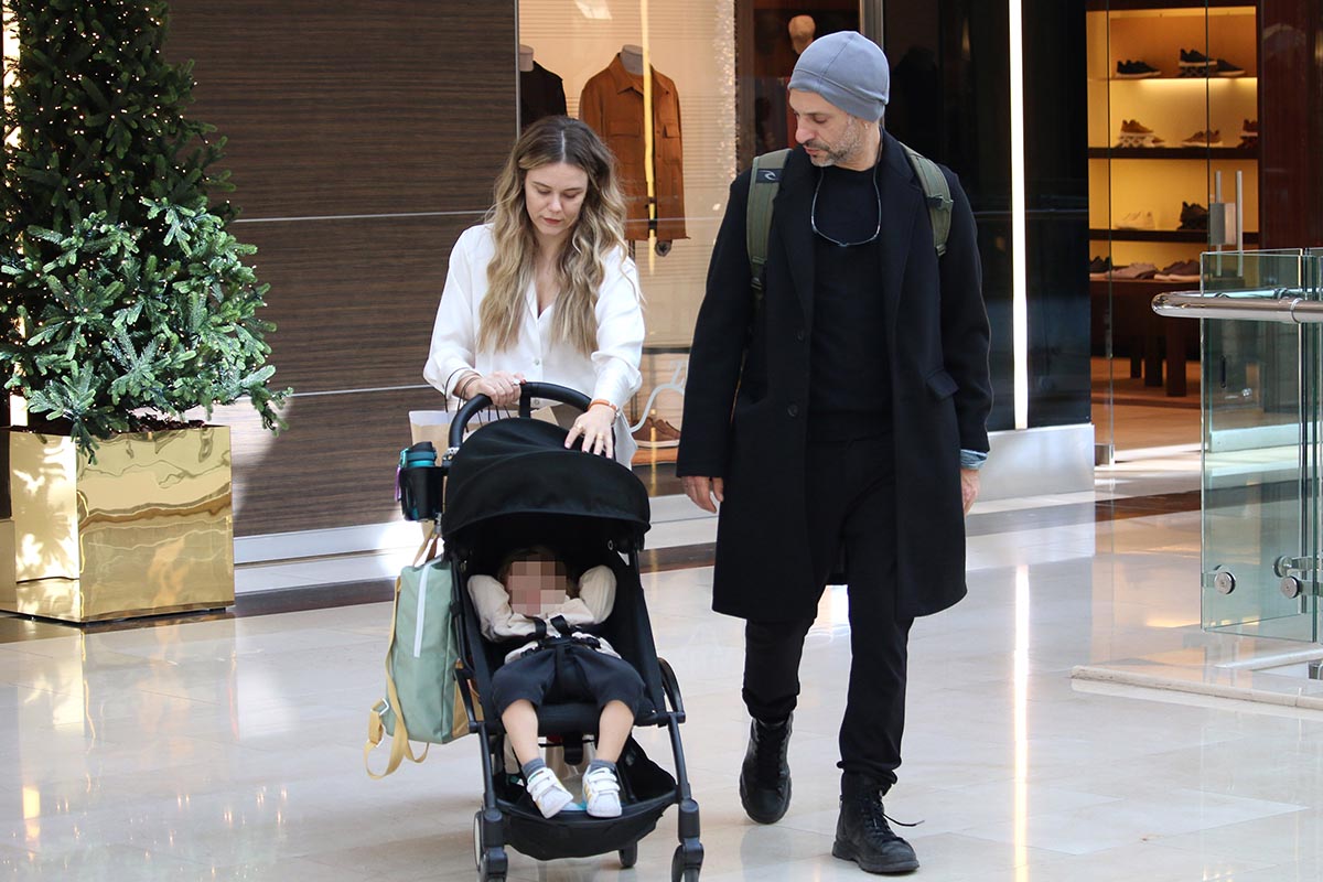 Το ζευγάρι εντόπισε ο φωτογραφικός μας φακός μαζί με τον γιο τους (σε καρότσι) στο γνωστό εμπορικό κέντρο του Μαρουσίου Golden Hall να ψωνίζουν και να χαζεύουν τα μαγαζιά.