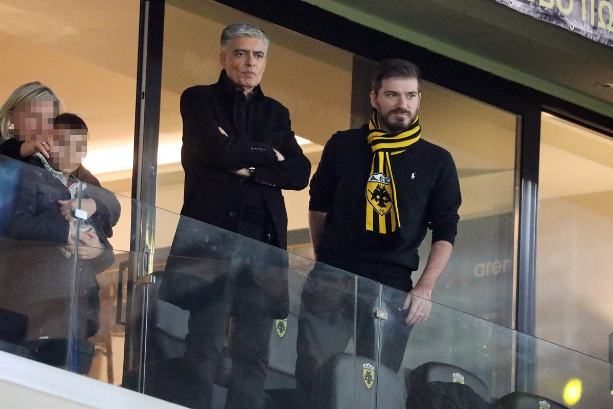 Ο φωτογραφικός μας φακός απαθανάτισε πατέρα και γιο στις κερκίδες vip να παρακολουθούν αγώνα της ΑΕΚ. Ο δεύτερος γιος του αν και τους ακολουθεί αυτή τη φορά απουσίαζε καθώς έχει φύγει στο εξωτερικό για σπουδές.
