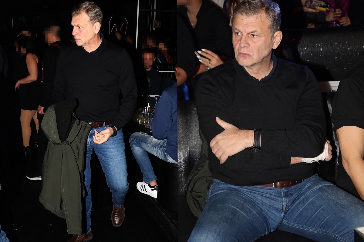 Ντυμένος κομψά έφτασε στο νυχτερινό κέντρο ενώ δεν έδειχνε ιδιαίτερα ευδιάθετος. Ο φωτογραφικός μας φακός ήταν εκεί και τους απαθανάτισε να διασκεδάζουν.
