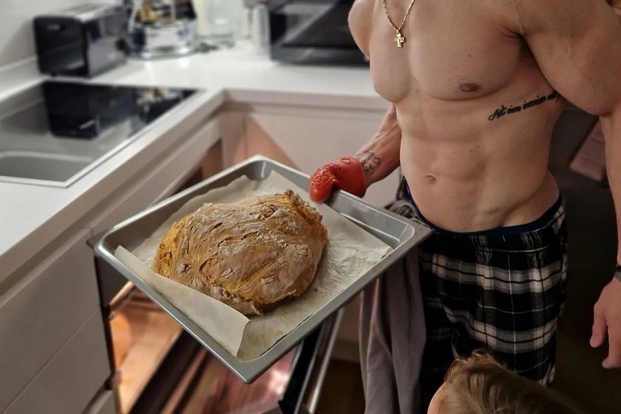 Ο γνωστός κύριος της σόουμπιζ μπήκε στην κουζίνα και μεγαλούργησε. Άφησε για λίγο τις προπονήσεις και απόλαυσε στιγμές με τη σύζυγό του και τις κόρες τους φτιάχνοντας ψωμί.