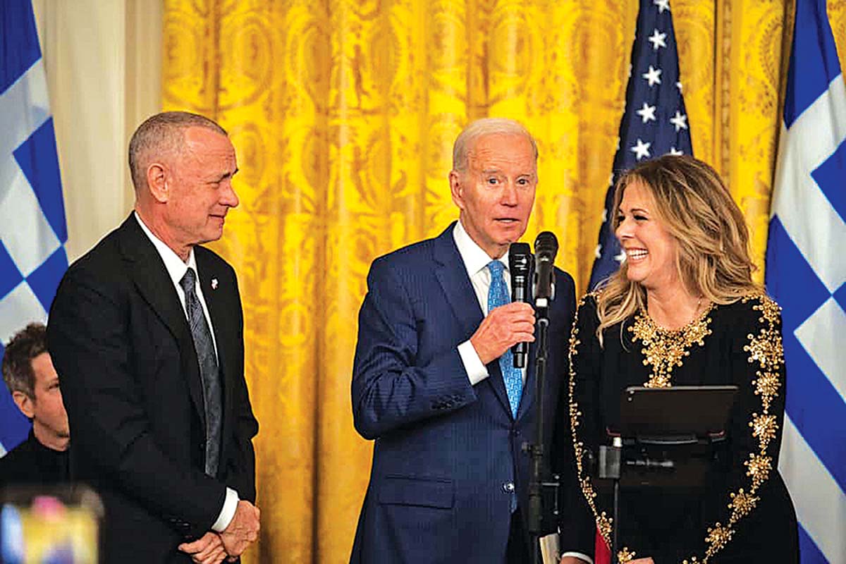 Στη συνέχεια ο πρόεδρος των ΗΠΑ (που στην ομιλία του αναφέρθηκε ξανά στους στενούς δεσμούς του με την ελληνοαμερικανική κοινότητα) κάλεσε τον Τομ Χανκς να τον συνοδεύσει στη σκηνή, με τον χολιγουντιανό σταρ να παίρνει τη σκυτάλη και να λέει «ναι, δεν είμαι Ελληνας, αλλά είχα την καλή ιδέα να παντρευτώ μια Ελληνίδα»! Ως γνωστόν, οι δυο τους απέκτησαν τιμητικά την ελληνική υπηκοότητα το 2020. «Ηταν ένα όνειρο που έγινε πραγματικότητα, που με προσκαλέσατε να τραγουδήσω σήμερα στον Λευκό Οίκο για τον εορτασμό της Ημέρας της Ελληνικής Ανεξαρτησίας» είπε, μεταξύ άλλων, η Ρίτα Γουίλσον μετά την εκπληκτική και συγκινητική ερμηνεία της.