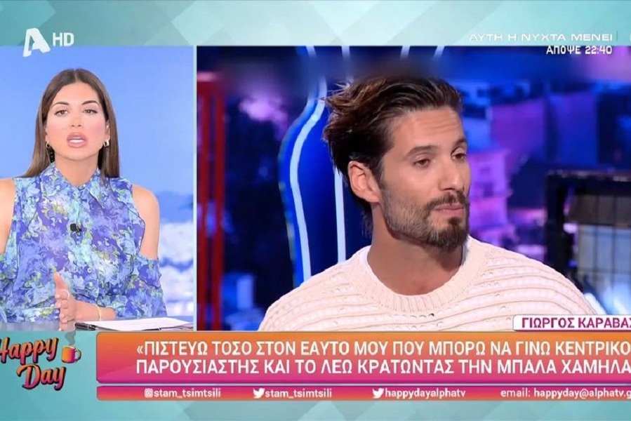 Εμένα για τον Γιώργο που ξέρω και εκτιμώ και συμπαθώ, μου κλότσησε. Ο Γιώργος που έχω γνωρίσει και εκτιμώ, είναι ένα παιδί πιο προσγειωμένο που προσέχει το πώς πλασάρει τον εαυτό του. Μου έβγαλε μία υπερ-βεβαιότητα. Από τη μία μου αρέσει, μου αρέσουν οι άνθρωποι με αυτοπεποίθηση, αλλά στα τρία χρόνια τηλεοπτικής παρουσίας όταν τα χρωστάς όλα σε ένα κανάλι και σε δύο πρότζεκτ, καλό είναι να κρατάς τη μπάλα ουσιαστικά πιο χαμηλά».