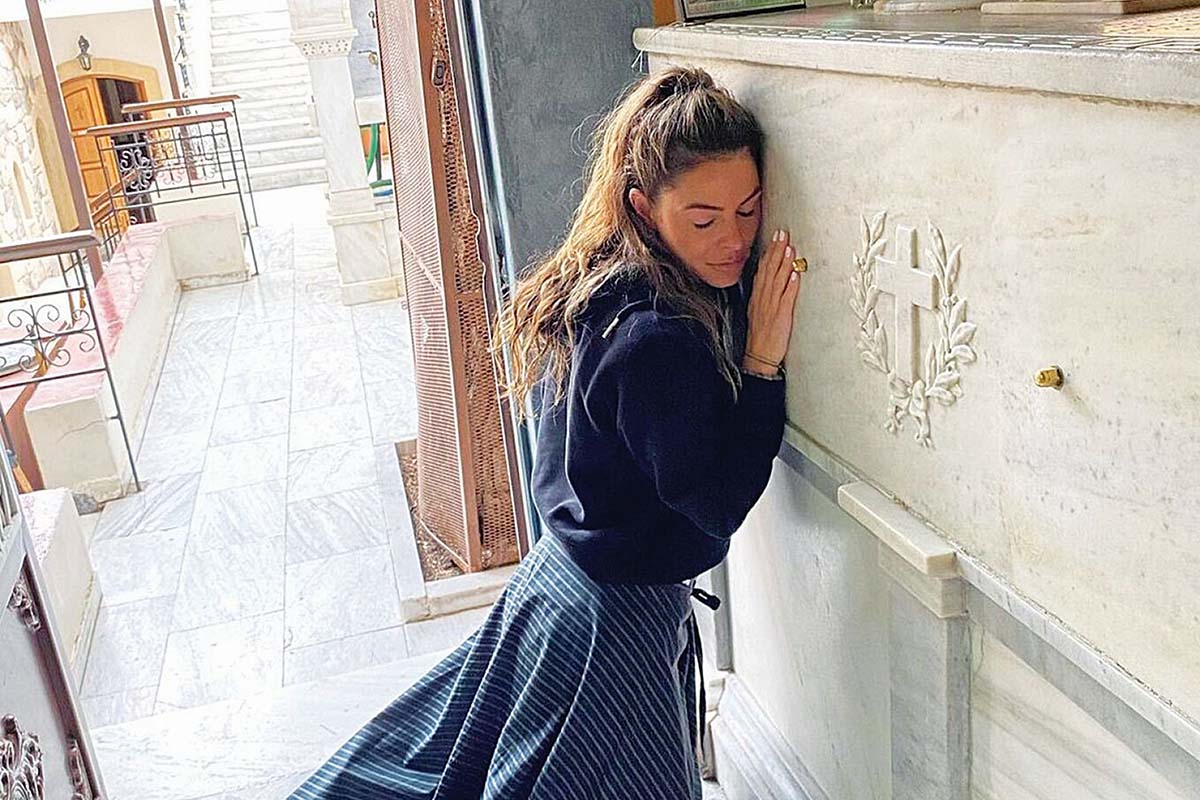 Πηγαίναμε στην εκκλησία του Αγίου Νεκταρίου στην Καλιφόρνια, αλλά το να πηγαίνουμε στην εκκλησία του στην Ελλάδα ήταν πάντα το όνειρο. Ηθελα να πω “ευχαριστώ” για όλα τα θαύματα και τις θεραπείες με τις οποίες ευλογηθήκαμε» αναφέρει παρακάτω στην ανάρτησή της η παρουσιάστρια, η οποία βρέθηκε στην Αίγινα μαζί με τον σύζυγό της Κέβιν Αντεργκάρο. «Ηταν η πρώτη μας στάση στο ταξίδι. Λένε ότι οι πιστοί μπορούν να ακούσουν τον άγιο Νεκτάριο στον τάφο. Μόλις γονάτισα, άκουσα χτύπημα. Αμυδροί θόρυβοι χτυπήματος.