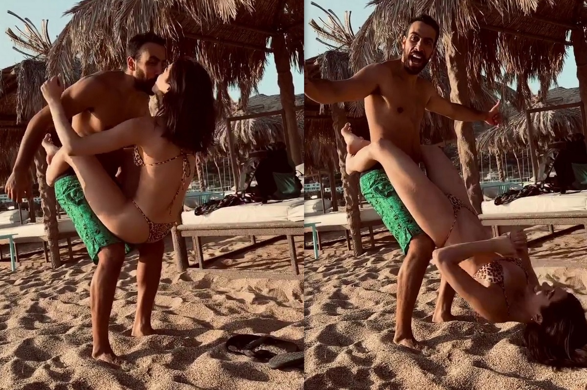 Το ζευγάρι πρόσφατα έκανε μια μικρή απόδραση για να απολαύσει στιγμές ξεκούρασης και τις βουτιές του. Με σύντροφο γυμναστή δεν θα μπορούσε να γλιτώσει η όμορφη Μελίνα τη γυμναστική ακόμα και στην παραλία.
